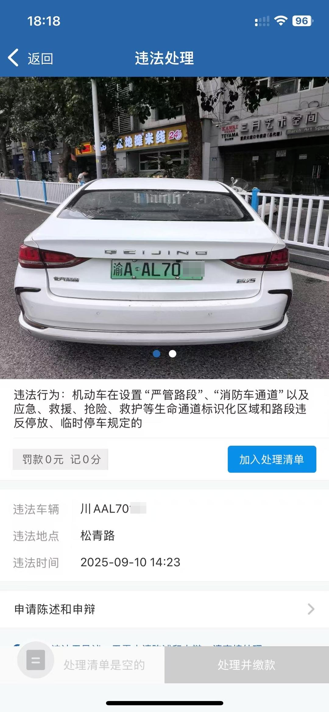 红星新闻记者看到,处罚页面上的确有一辆白色车斜着停放在路旁,但李女士说这并不是自己的车,自己的车是绿色,只是车牌号和她的一样,“我的是川A,对方的是渝A,后面的数字字母都一样。”而且10日当天,自己的车好好停放在成都家中,不可能到了重庆,而且车也不一样。她随后进行申诉,但截至目前还未有结果。