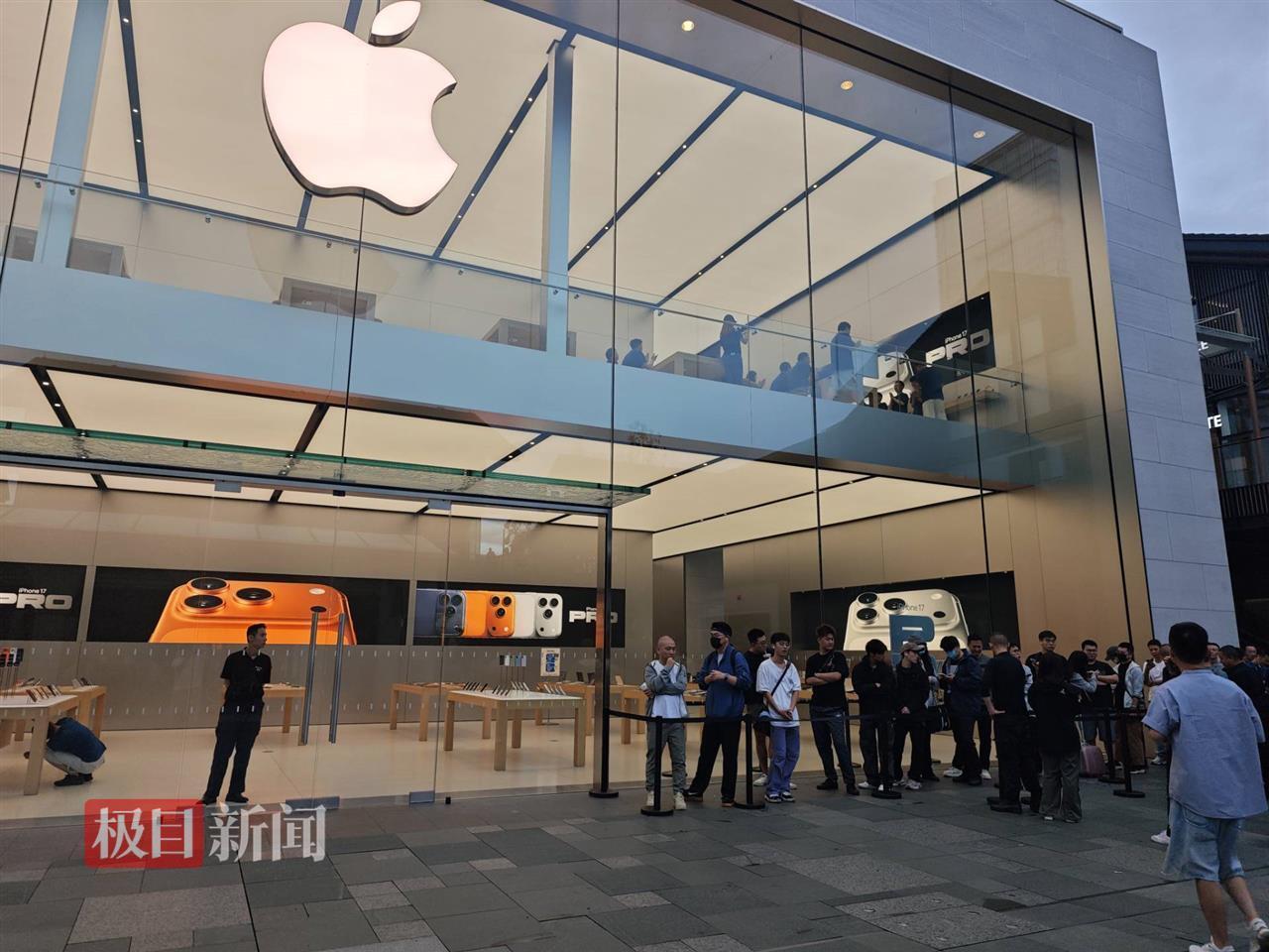 9月19日,苹果iPhone 17手机系列首销。当天早上7点左右,极目新闻记者在四川成都苹果直营店(太古里店)门口看到,已有数十名等待提货的顾客在排队。