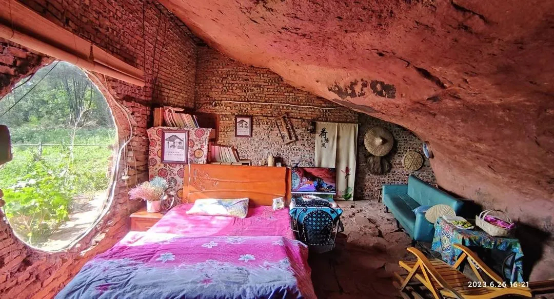 9月19日,据封面新闻消息,在四川自贡富顺板桥镇木桥沟村,35岁村民闵亨才把“家”安在了崖壁下,吸引几十名全国各地粉丝到此体验。
