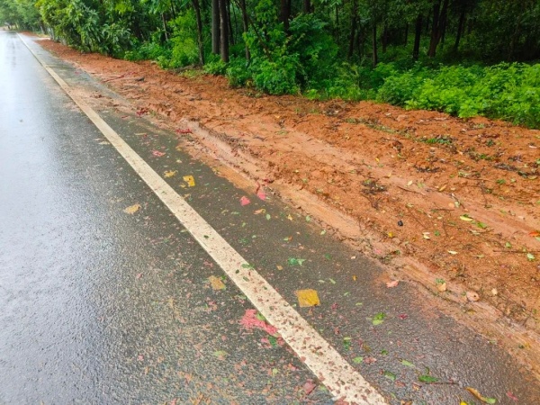 事发地点,雨后的路边还留有深深的车轮印