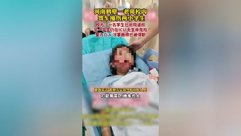9月19日,针对河南鹤壁市实验学校一老师在校内驾车撞伤两名小学生的相关网帖,鹤壁市实验学校回应,9月10日,该校女教师郭某驾车在校内停车场附近撞到两名五年级女生。目前,公安部门已经介入,郭某也已被停职接受调查。