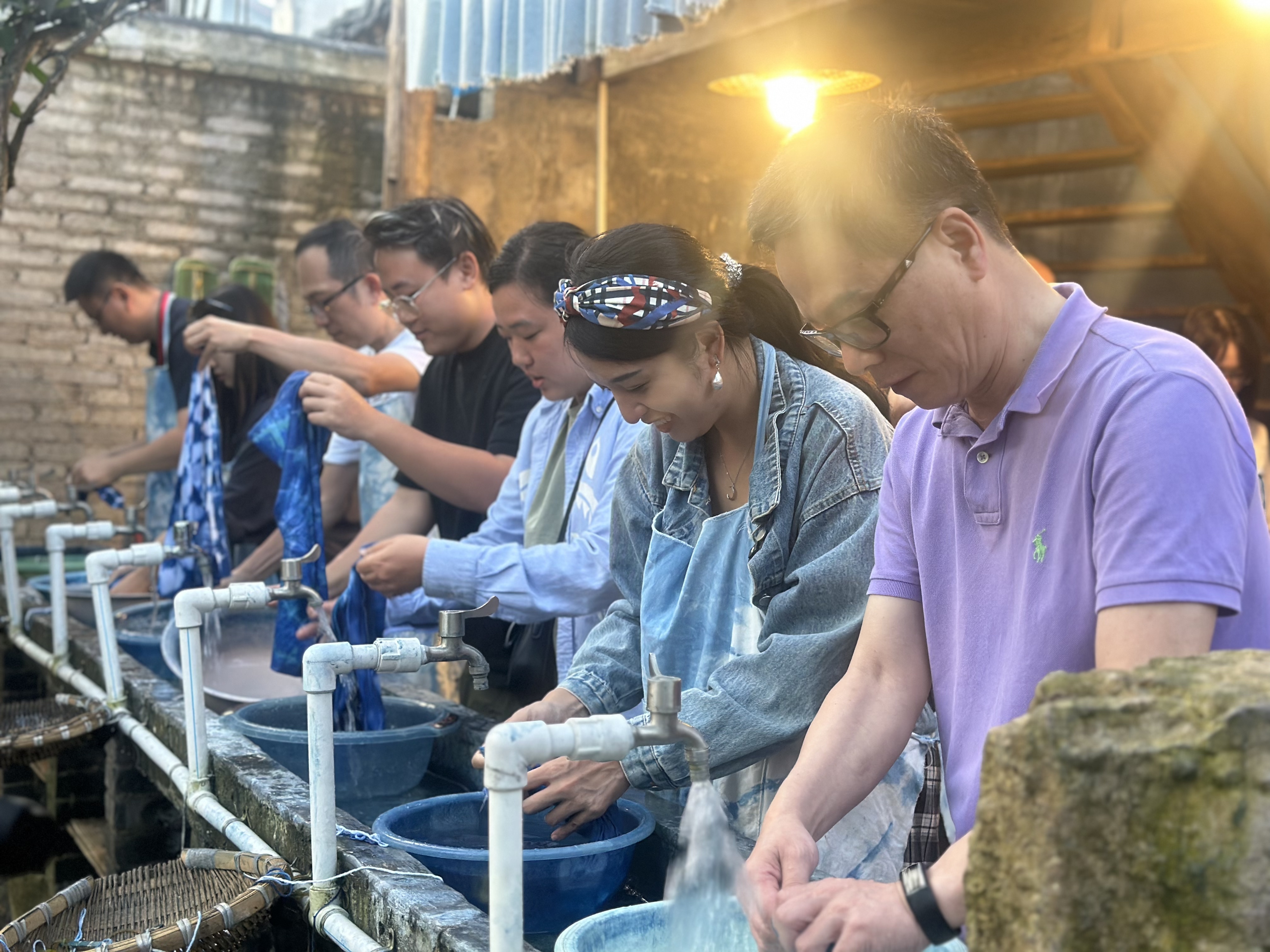 19日,两岸媒体团前往安龙国家山地户外运动示范公园与万峰林,不仅领略了壮丽的峰林奇观,还亲身体验布依族蜡染、扎染技艺,沉浸于非遗文化之中。台湾网红“台妹涵涵”在体验飞拉达攀岩后兴奋地表示:“在悬崖上攀爬非常刺激,体验极佳。”她还特别提到,一旁的悬崖酒店推窗即见万峰林,是户外爱好者的理想之地。