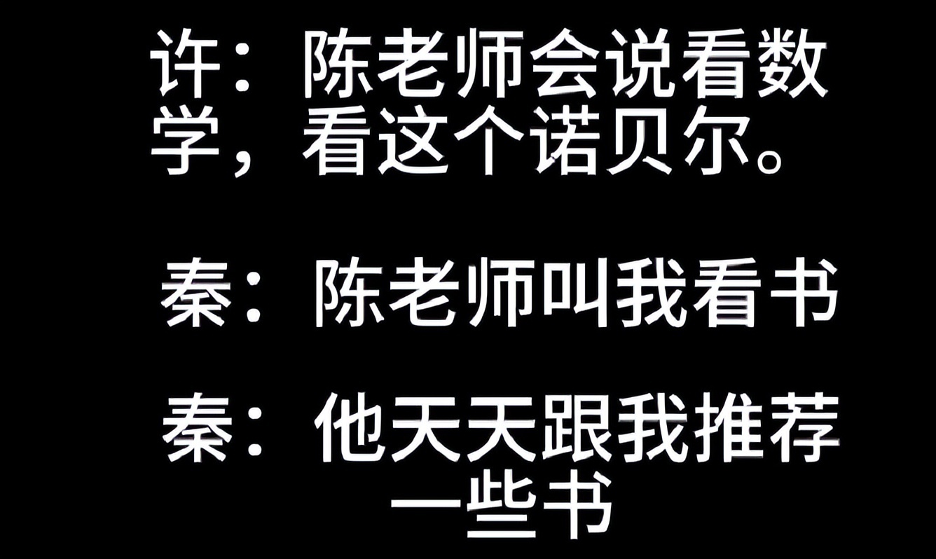 录音中的第三个人许某开始发力了,提到了靳东“诺贝尔数学奖”的梗,秦雯立马接上,说陈老师让她看书,她买下来看了半天,才发现陈道明自己根本没看过,只是为了显得有文化,内涵陈道明故作高深,不懂装懂。