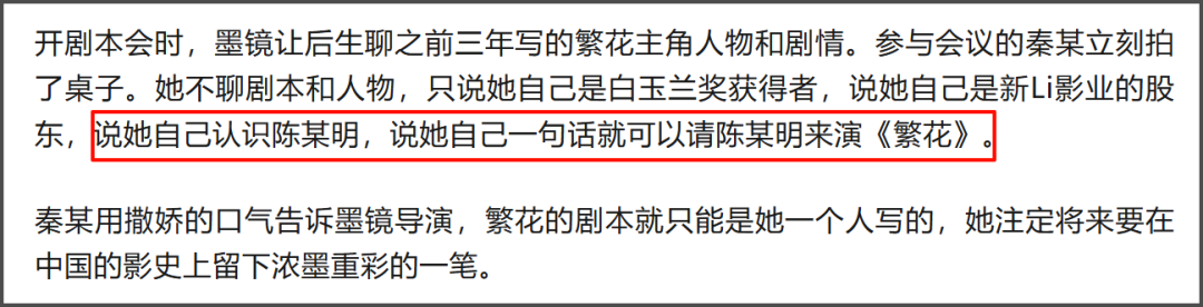 最近《繁花》编剧署名一事闹得沸沸扬扬,秦雯深陷风波当中,不仅创作能力受到质疑,私下为人也被曝光,谁不在就“蛐蛐”谁,陈道明和王家卫都没少被她内涵。