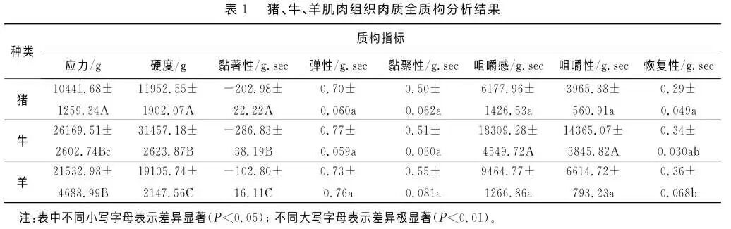 一篇发表在《中国牛业科学》上的论文以新鲜猪、牛、羊半腱肌为研究对象,分析了猪牛羊肌肉组织质构特性以及肌纤维。结果发现,猪肌纤维排列结构松散,为交错的网状,而牛和羊肌纤维排列方向一致,结构紧密。