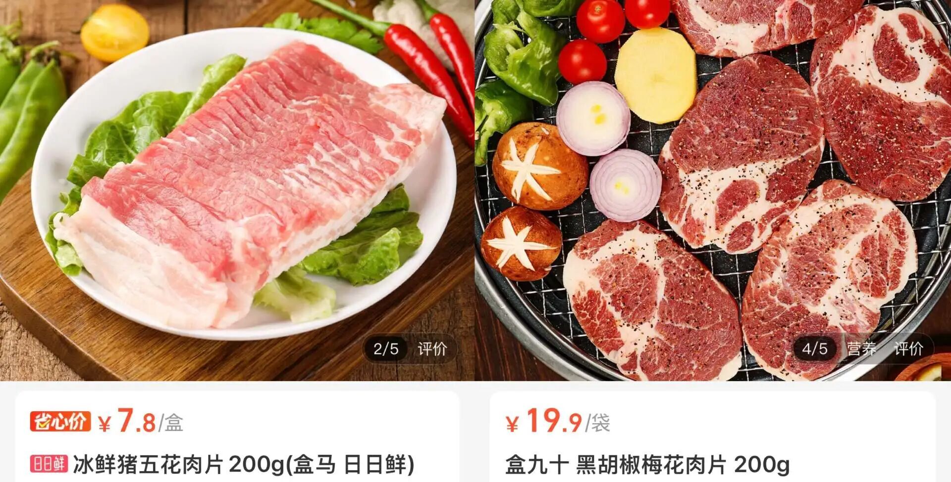 皮下脂肪满满的猪五花|图源:盒马App
