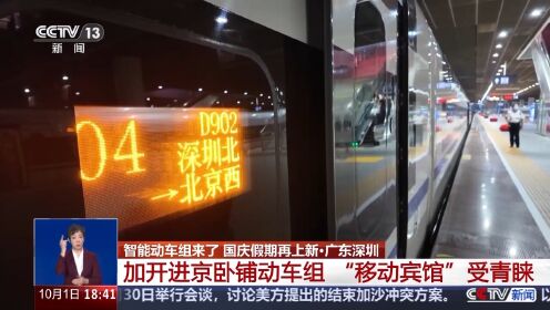 9月30日,一列加开的进京列车驶入深圳北站。列车全列采用软卧单间设计,于当晚6点多发出,次日清晨抵达北京。深圳铁路部门将在10月1日、2日、7日、8日等重点日期加开这趟列车。