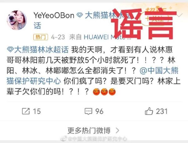 最近,旅美大熊猫“丫丫”、旅泰大熊猫“林惠”的情况受到高度关注,与此同时,一些与大熊猫相关的谣言也甚嚣尘上。4月28日晚,中国大熊猫保护研究中心在其官方微博发文回应网友关切。