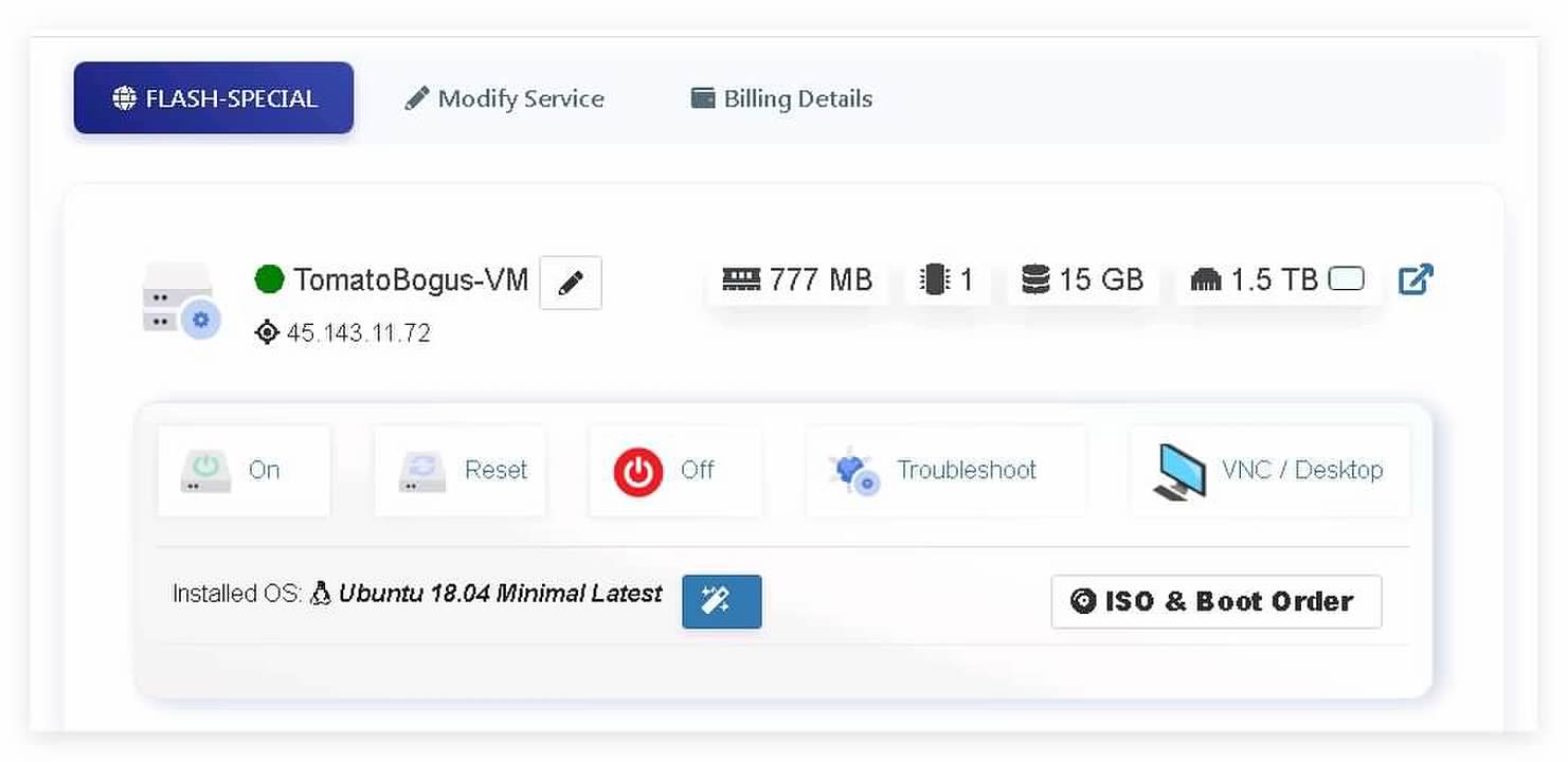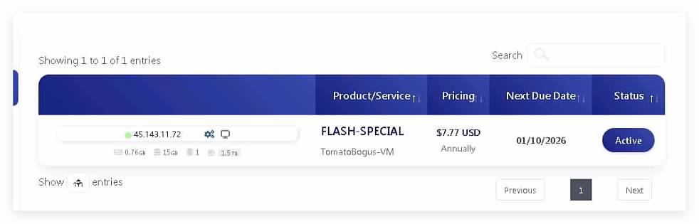 年付7.77刀,1核-777M内存-15G盘-1.5TB流量,信息如下图: