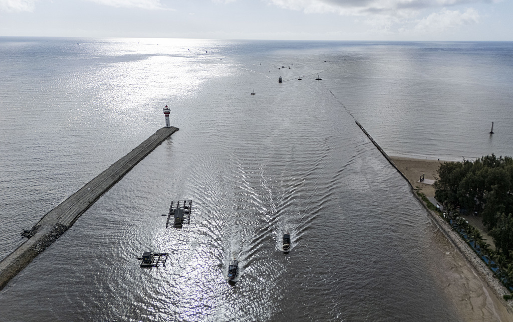 2025年10月3日,海南省琼海市潭门港,渔船陆续回港避风。视觉中国 图