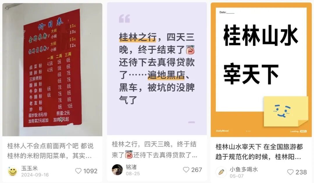 ▲ 社交媒体上关于桂林旅游的吐槽。图 / 小红书截图