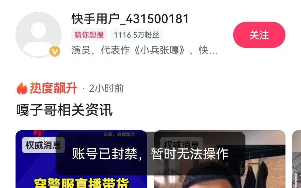 红星新闻记者注意到,谢孟伟的多个社交平台从17日下午开始已经停止更新,但依旧能看到过往内容。18日,谢孟伟的快手账号显示“账号已封禁,暂时无法操作”。