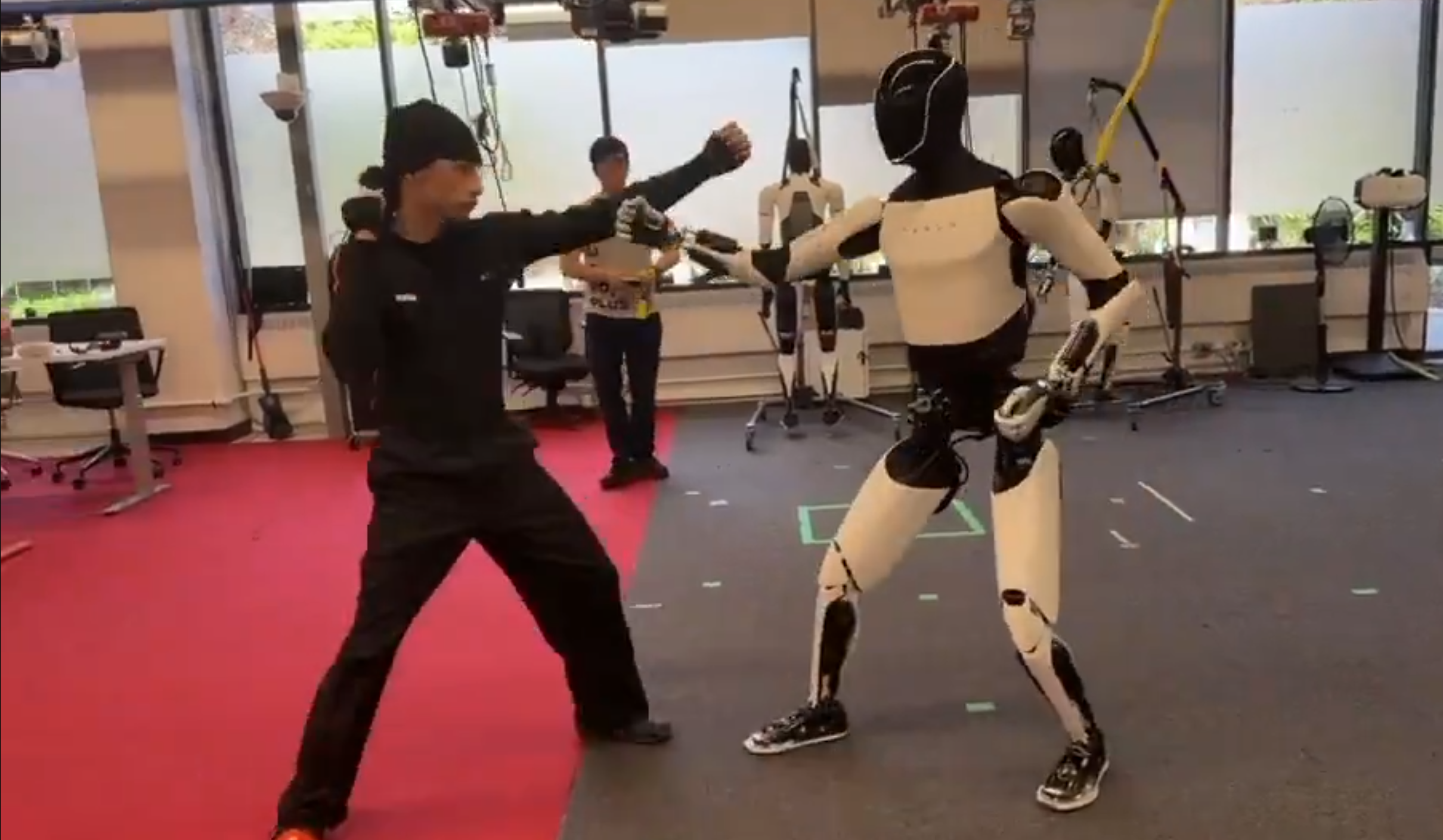 马斯克4日在社交平台X上发布了一段人形机器人“擎天柱”学习功夫的视频。图为马斯克发布的视频截图