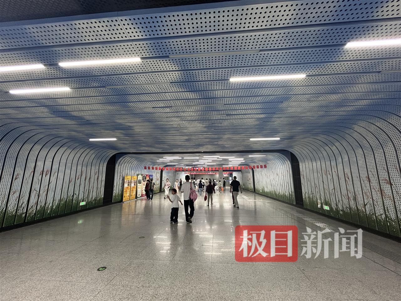 从北京来武汉游玩的佟女士走在徐家棚站换乘传送带上笑称:“第一次来武汉,地铁站大得令人震撼!准备去F口寄存行李,感觉走过了一个四季。”