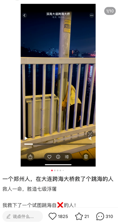 胡女士说,她和朋友无法将中年男子拉上来,只好用言语对他进行劝说,“你有什么想不开的可以和我们说说,没有什么过不去的”“你要是想喝酒,我们从外地来的可以陪你一起喝”,中年男子回应道:“你们当真吗?”胡女士和朋友马上给予了肯定的答复,这才把他从栏杆外拉了上来,整个过程仅仅过去了约8分钟的时间。(极目新闻)