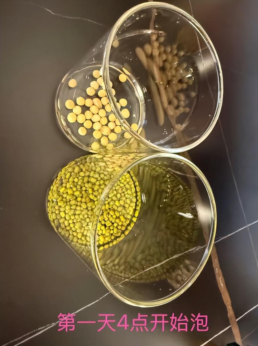 “10月1号那天,我带孩子回了诸暨奶奶家,先把这个任务交给了婆婆。我婆婆以前做过豆腐,对豆制品很了解,她就去菜场买了一斤绿豆,拿了一两出来播种。她为了这盆绿豆还专门买了一个桶和滤篮,然后把绿豆均匀地铺在滤篮里,放入水桶里,水桶底部装满水,拿一块布盖好,一天浇3次水。没想到第二天芽头就冒出来了。孩子觉得很新奇,时不时就要过去看一看。”