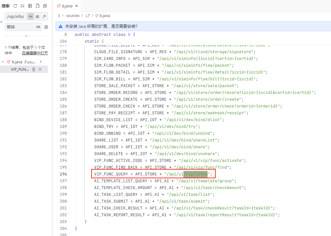 搜索接口路径 /vip/infos,找到相关代码逻辑: