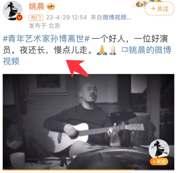 在得知孙博去世之后,知名演员姚晨发文悼念:一个好人,一位好演员。夜还长,慢点儿走。对于姚晨老师发文,更是让很多观众破防,不少网友也暖心安慰,希望姚晨节哀。