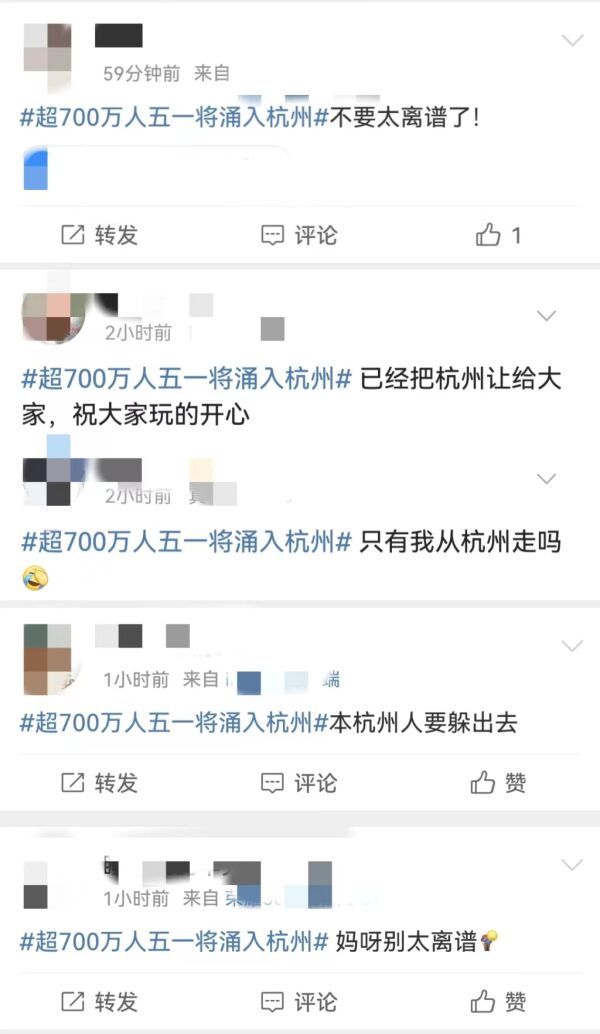 据统计,杭州市将迎来700万人次的客流,预计在5月1日达到峰值。