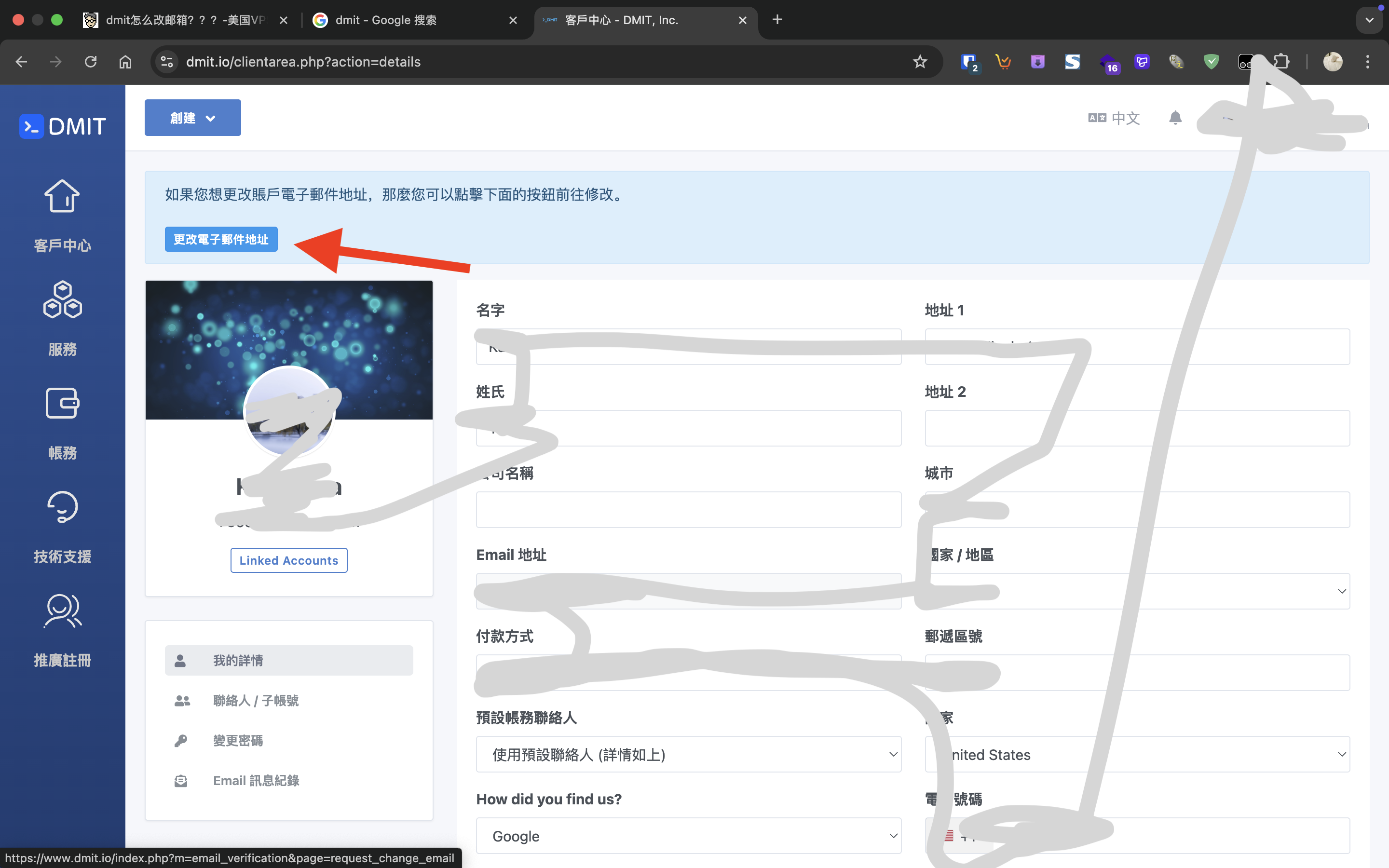 dmit怎么改邮箱???