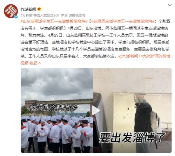 导读:4月28日,网传蓝翔五一期间派学生支援淄博烧烤,引发关注。29日,蓝翔一工作人员表示:个别酒店有需求,学生们报名很积极,想要感受淄博当地的氛围。