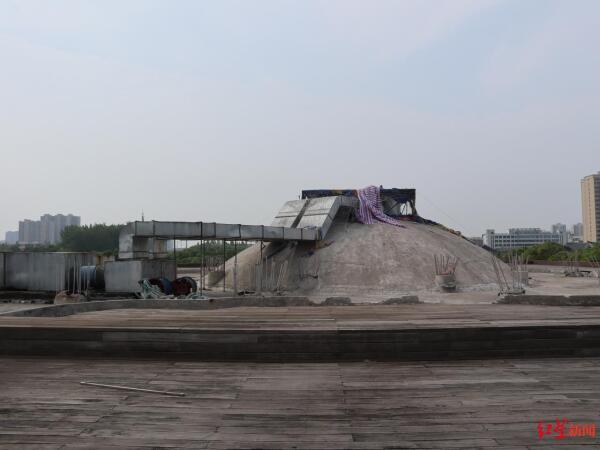 目前,基座上残留着雕像单体拆除后留下的水泥构造,形似土包,插在水泥“土包”上的一簇簇钢筋直接暴露在外。关公义园内的工作人员向红星新闻记者介绍,从2021年9月开始拆卸头部开始,巨型关公雕像直到2022年上半年才彻底拆除完毕。