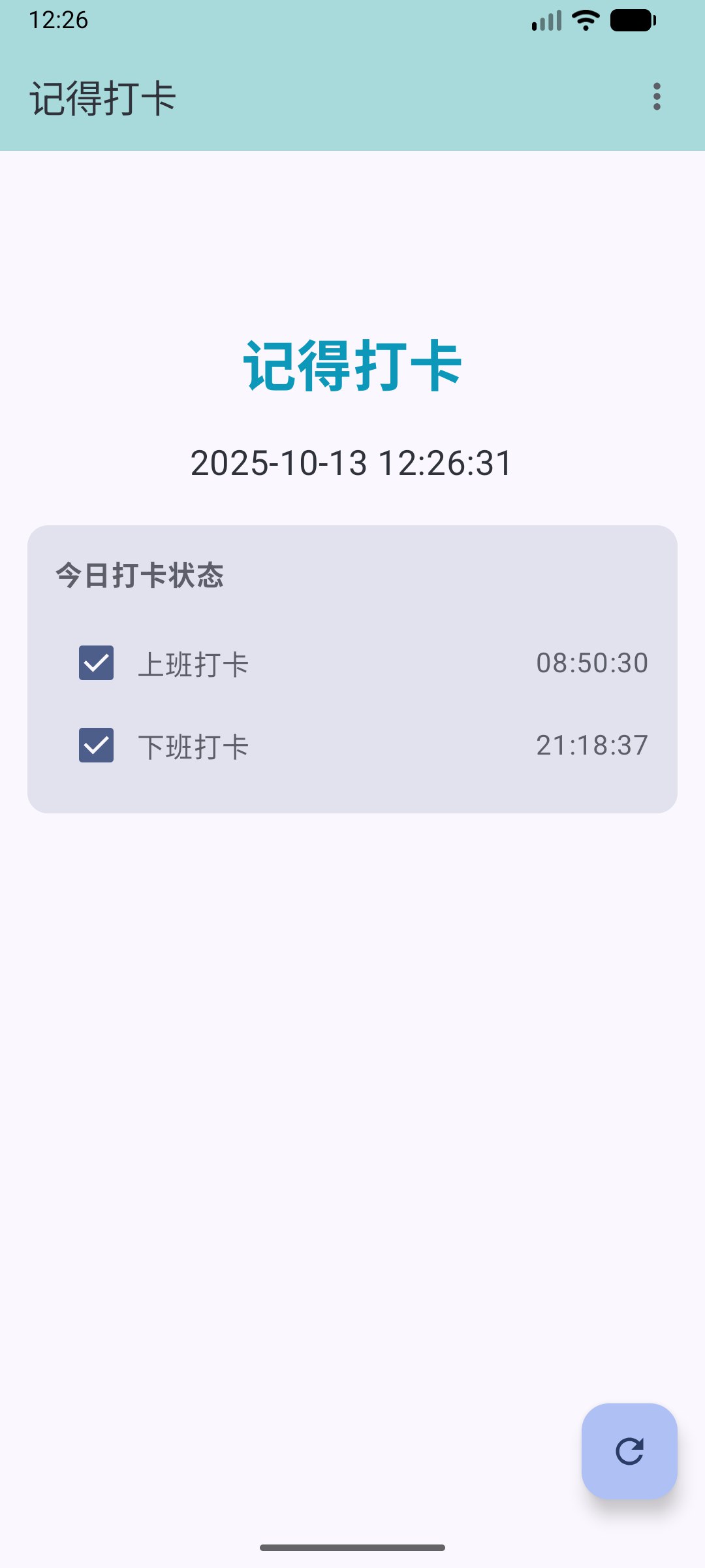 记得打卡是一款基于 Android 平台的打卡时间管理应用,使用 Jetpack Compose 构建现代化 UI ,支持上下班打卡、历史记录查询、工作时间统计分析等功能。