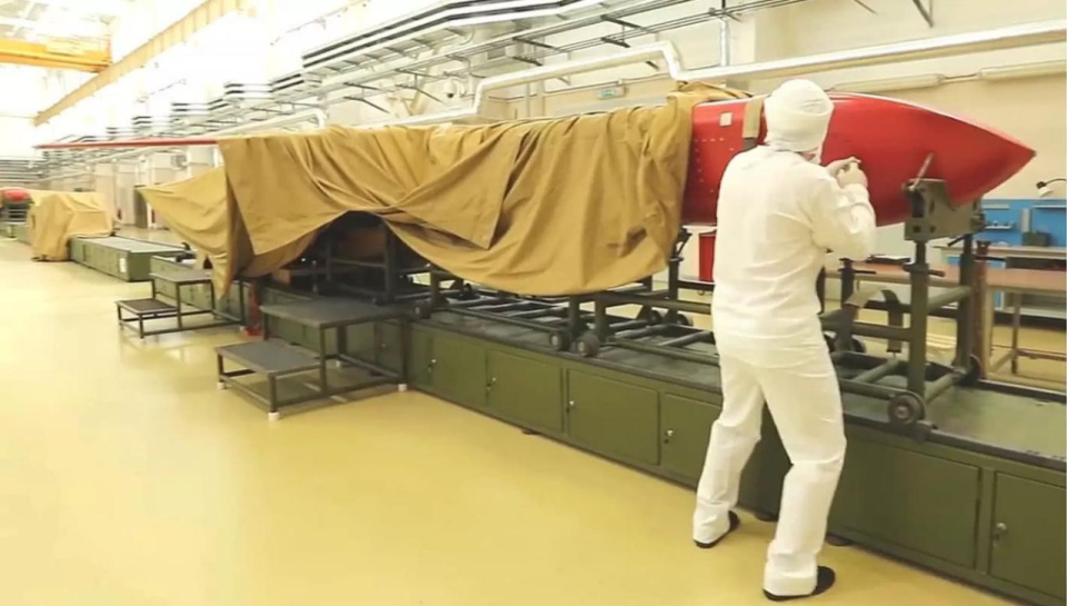 俄国防部展示的在总装车间的“海燕”核动力巡航导弹。