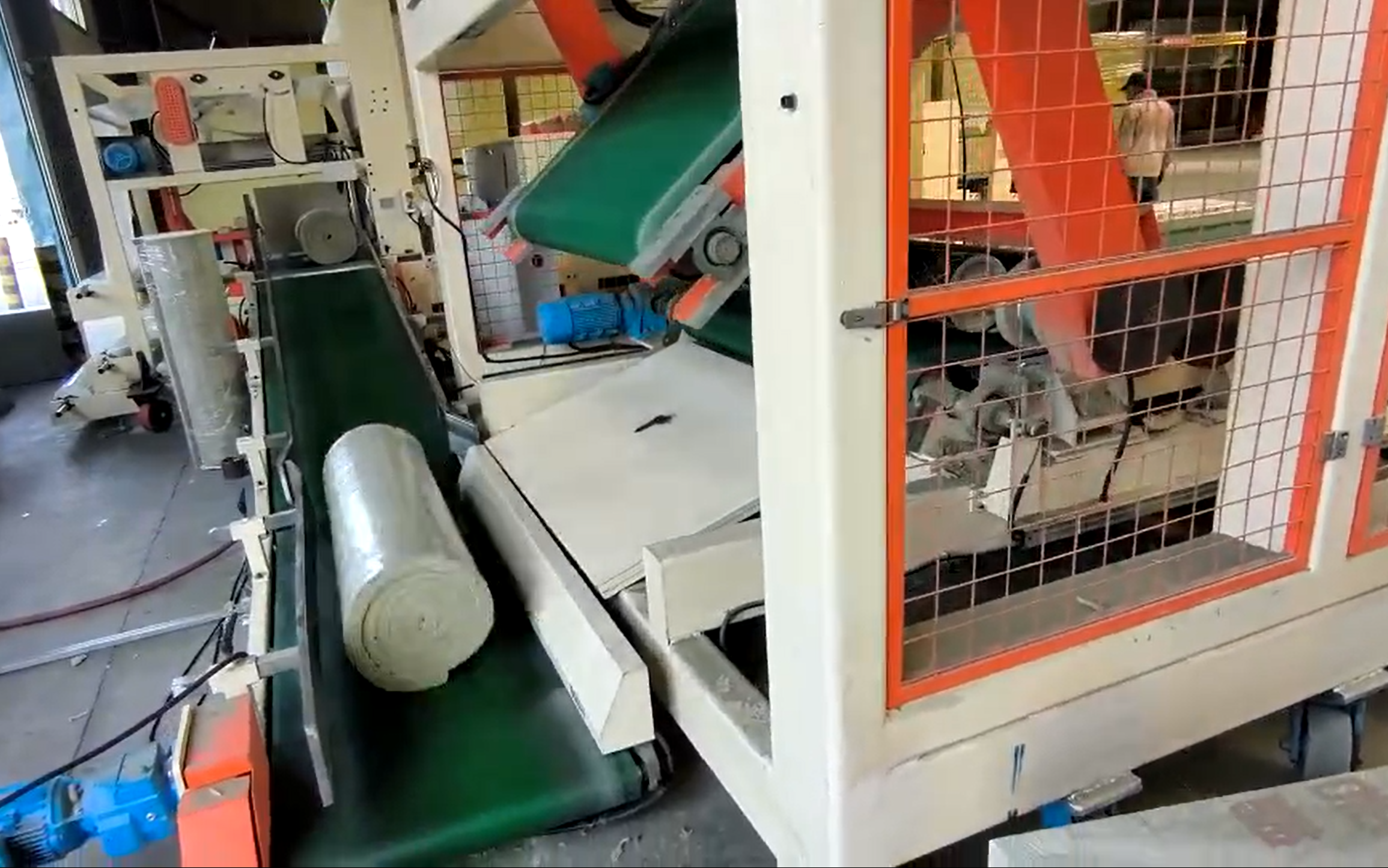 中辰智能卷毡机通过高精度履带传送系统与数据化控制,可将岩棉、玻璃棉等材料快速卷曲成轻质小体积产品,不仅便于储存与运输,还大大提升了工厂产线的自动化效率。