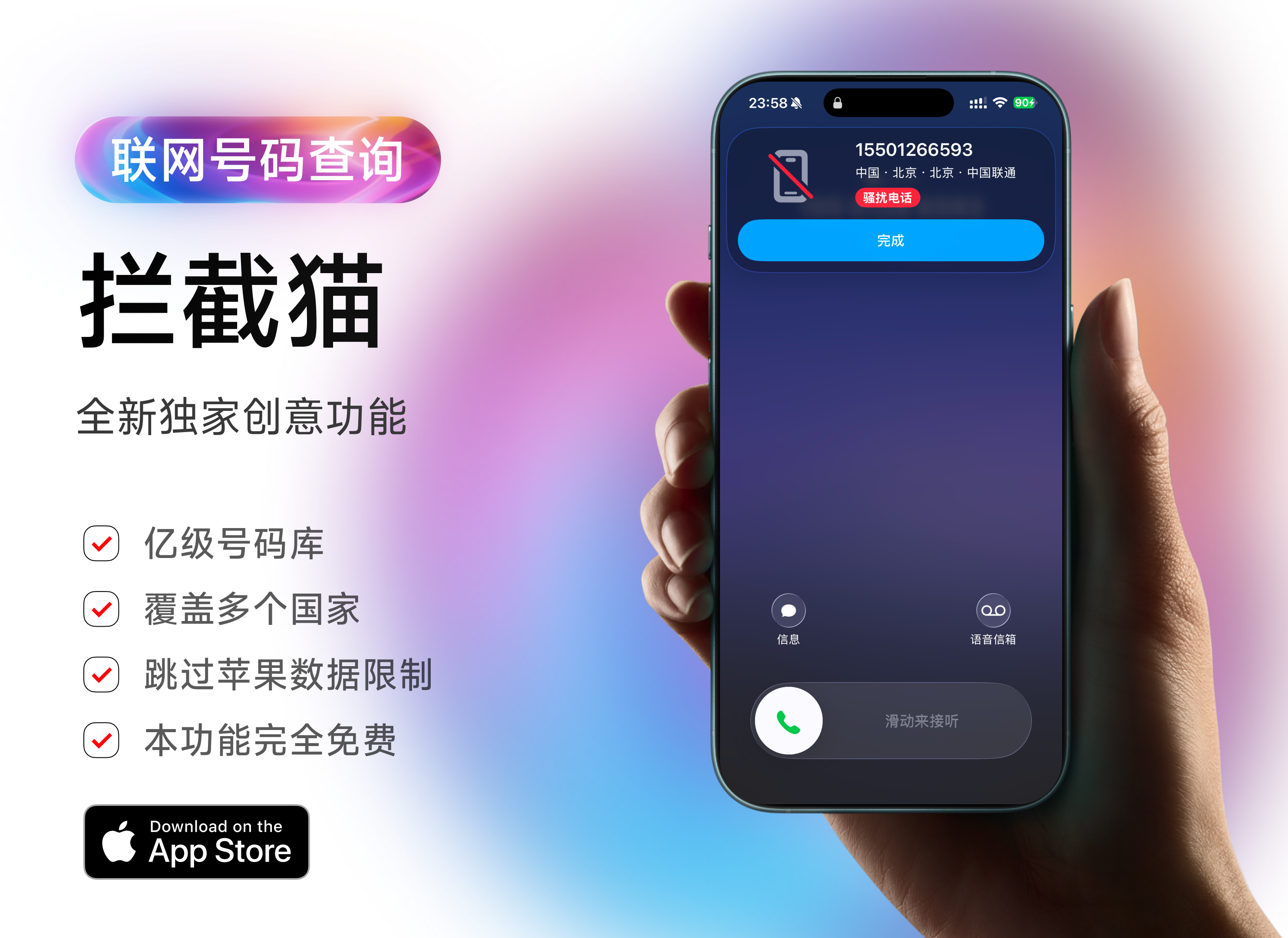 大家好,我是拦截猫 APP 作者,一直比较愁,因为 iPhone 电话标记数据,只能写入本地,而且有数据限制,可能也就几百万,效果有限一直不理想。