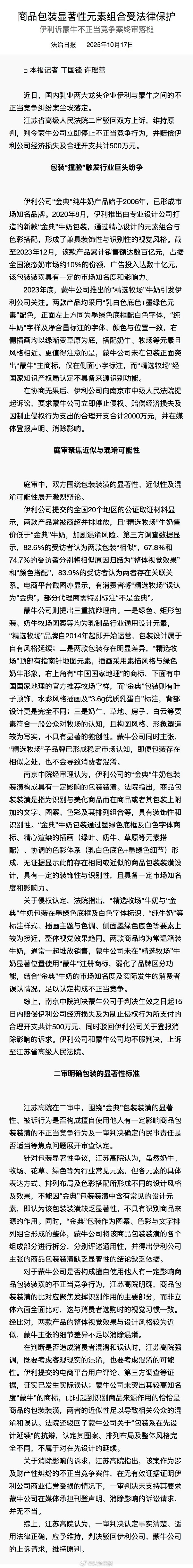 据法治日报消息:近日,国内乳业两大龙头企业伊利与蒙牛之间的不正当竞争纠纷案尘埃落定。