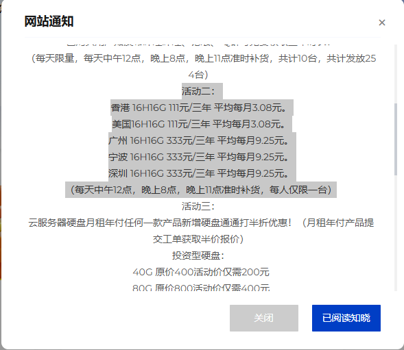 先上AFF,https://www.szhdy.com/aff/OBKAVFBT 美国16H16G 50M 111元/3年!!! 中午抢到一个美国的机器,16H16G除了可以用来架设steam游戏如饥荒之类的服务器还能干啥? 狐蒂云三周年秒杀活动 月付1元的香港好像无货了, 可以看看其他的 每天三个时段可枪,进官网后首页左上角活动点开三周年就可以! 三周年, 美国, 可以用来
