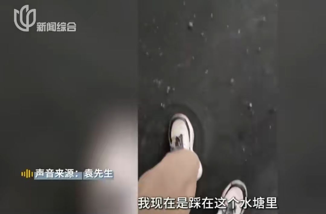 发现房屋泡水后,袁先生联系了物业上门查看,物业表示,可能是房屋的下水管接到了总管上,导致的渗水。