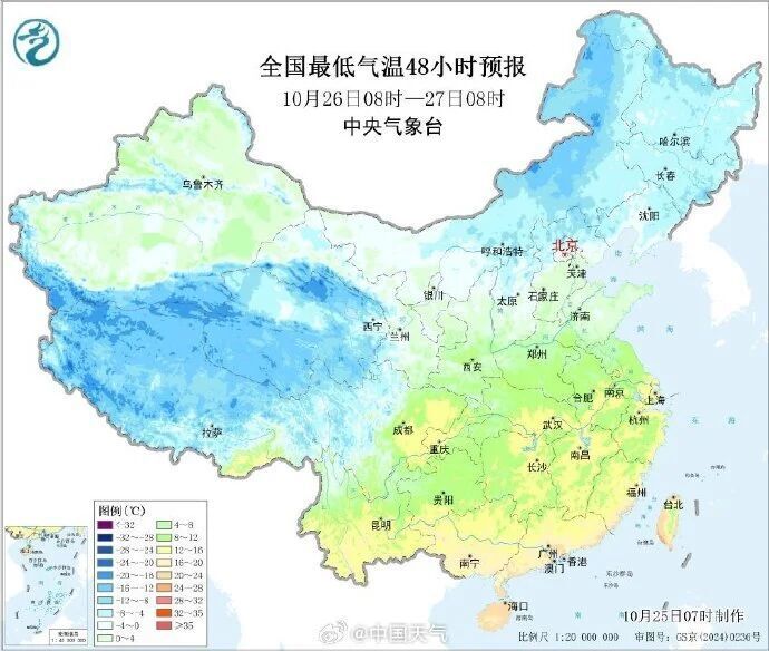 今天(25日)起,新一股冷空气将开始影响我国北方,未来三天北方多地将再度刷新气温新低,太原、西宁等地或首次降至冰点及以下,内蒙古东北部、黑龙江等地迎明显降雪。此外,今明两天青藏高原降雪持续,出行应注意交通安全。