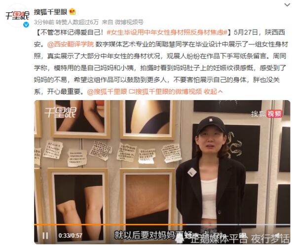 在网上看到一组西安翻译学院学生的作品,他以女性身材照为角度,来向大家宣传反对身材焦虑这件事。