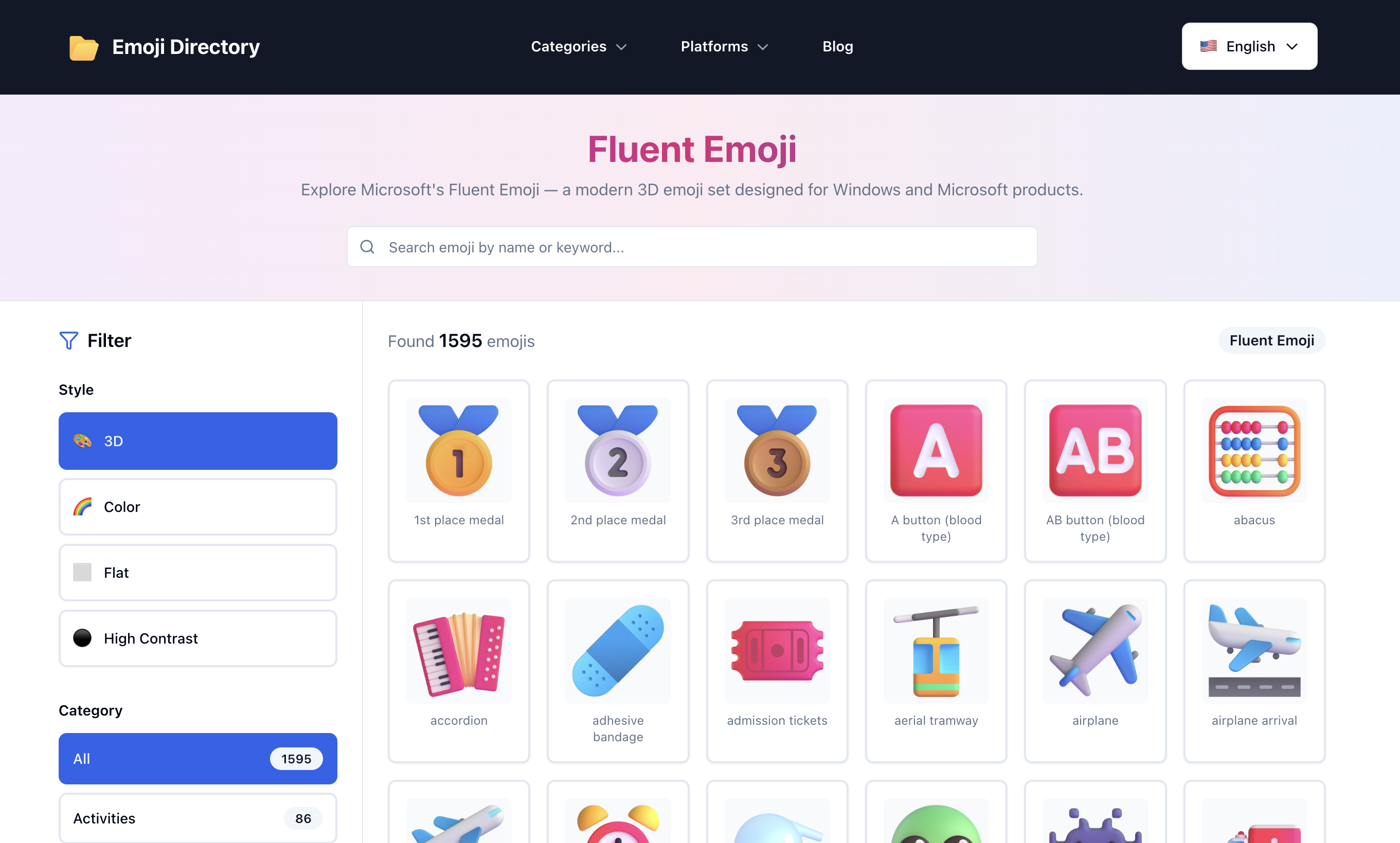 我在做独立开发的时候,经常为设计发愁。后来发现用 Emoji 替代图标挺香的,标准化、统一又好看。尤其是微软那套 Fluent Emoji,真的很精致。于是就顺手做了个聚合网站,加上搜索功能,方便自己(也方便别人)快速找到想用的 Emoji 。