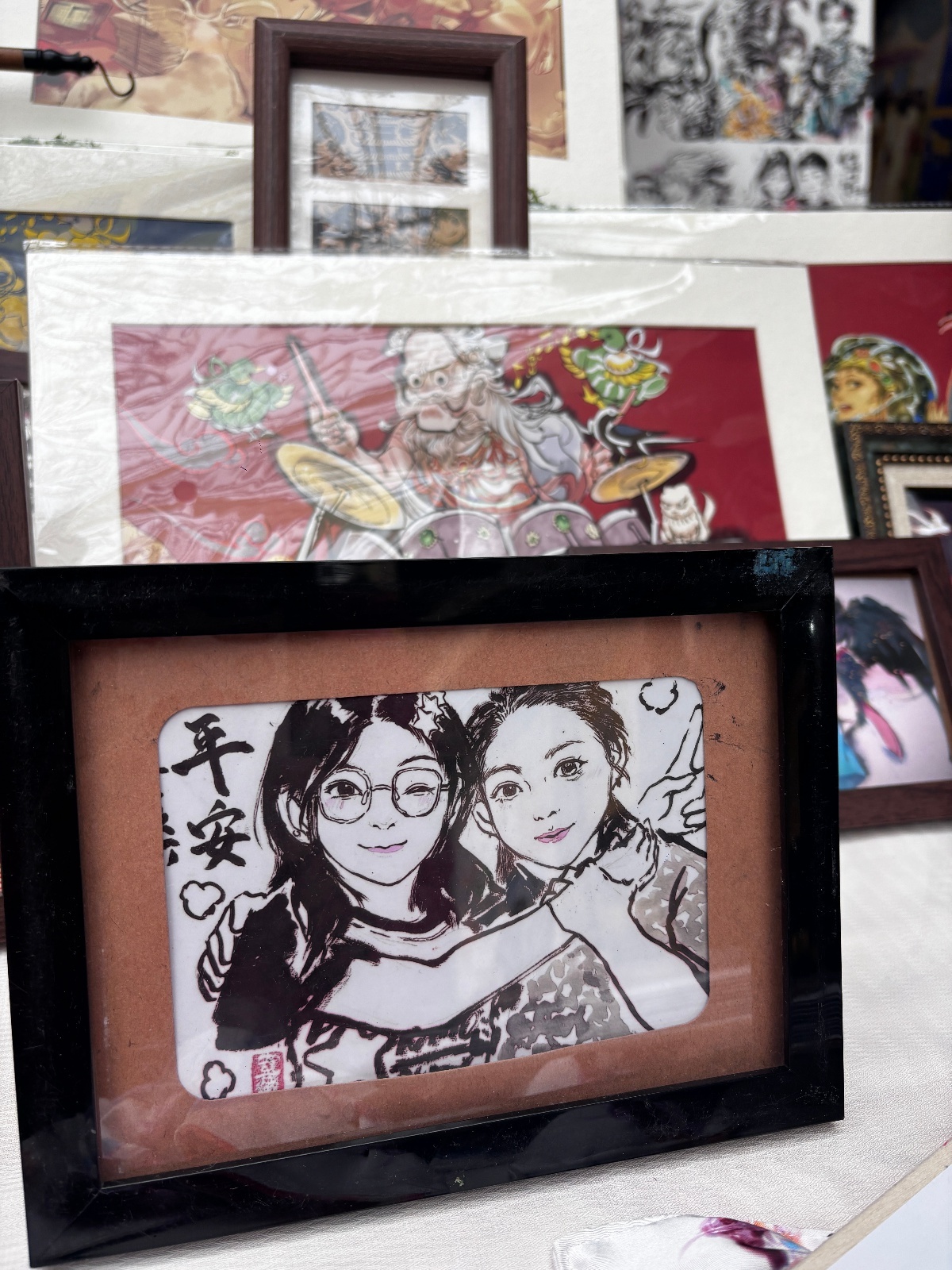 摊位上展示的画像作品。图/九派新闻 蔡晓萱