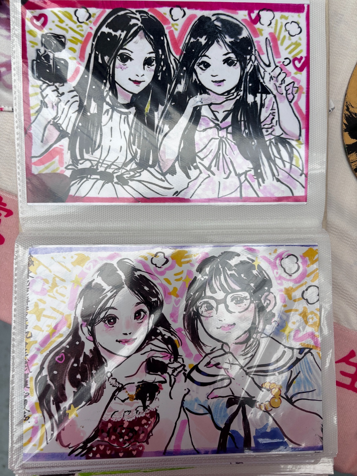摊主唠唠是位00后,4岁开始学画,本科毕业于湖北大学美术专业,已考研到湖北美术学院国画专业。今年年初,她开始在武汉三镇的市集摆摊作画并同步在线接稿。生意火爆时,日收入能超过千元。