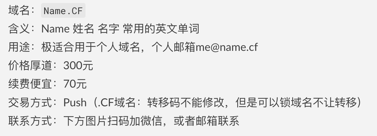 出一个域名:Name.CF 适合用于个人域名、博客、邮箱 ...