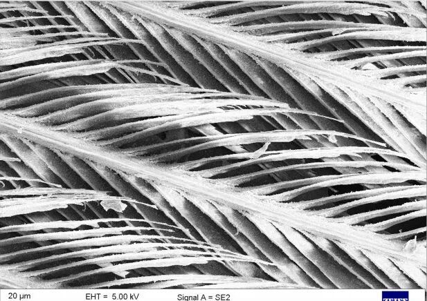 但这些结构比普通的拉链要更细密,形成了很好的疏水结构。当有少量的雨水滴落在羽毛上的时候,雨水会直接顺着羽毛滑落下来,并不会渗透进羽毛内部打湿有保暖性的羽绒。