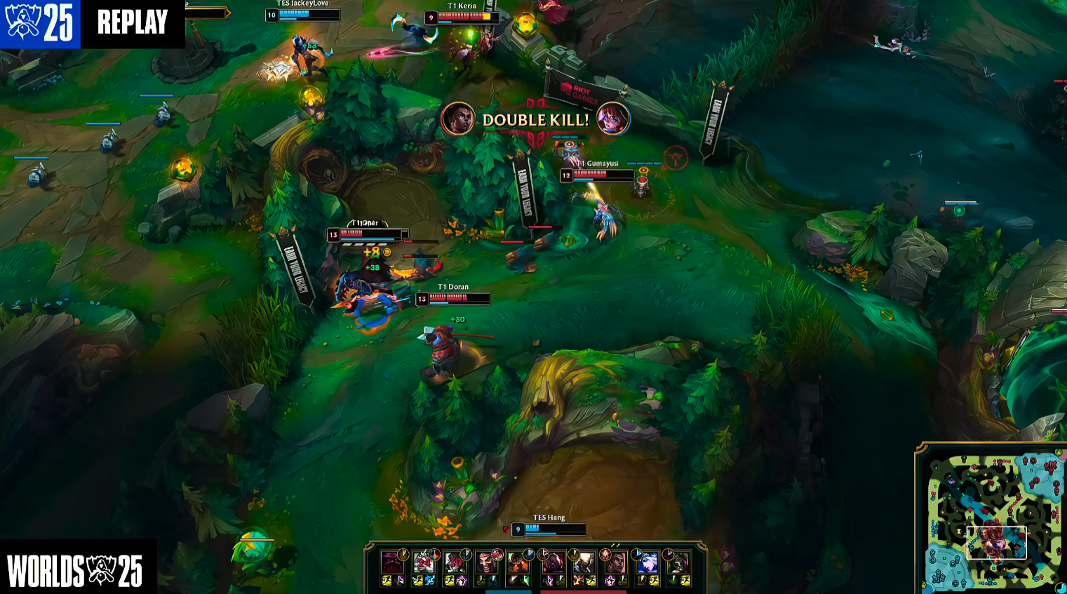 前期Kanavi一直尝试抓人,奈何没有机会,6分钟T1抓到机会直接中野上路越塔将TES双人路击杀。9分钟阿水飞机在上路抓到Faker加里奥没闪,直接对线将其击杀。12分钟小龙被Oner拿到,TES后续追击打出1换2。