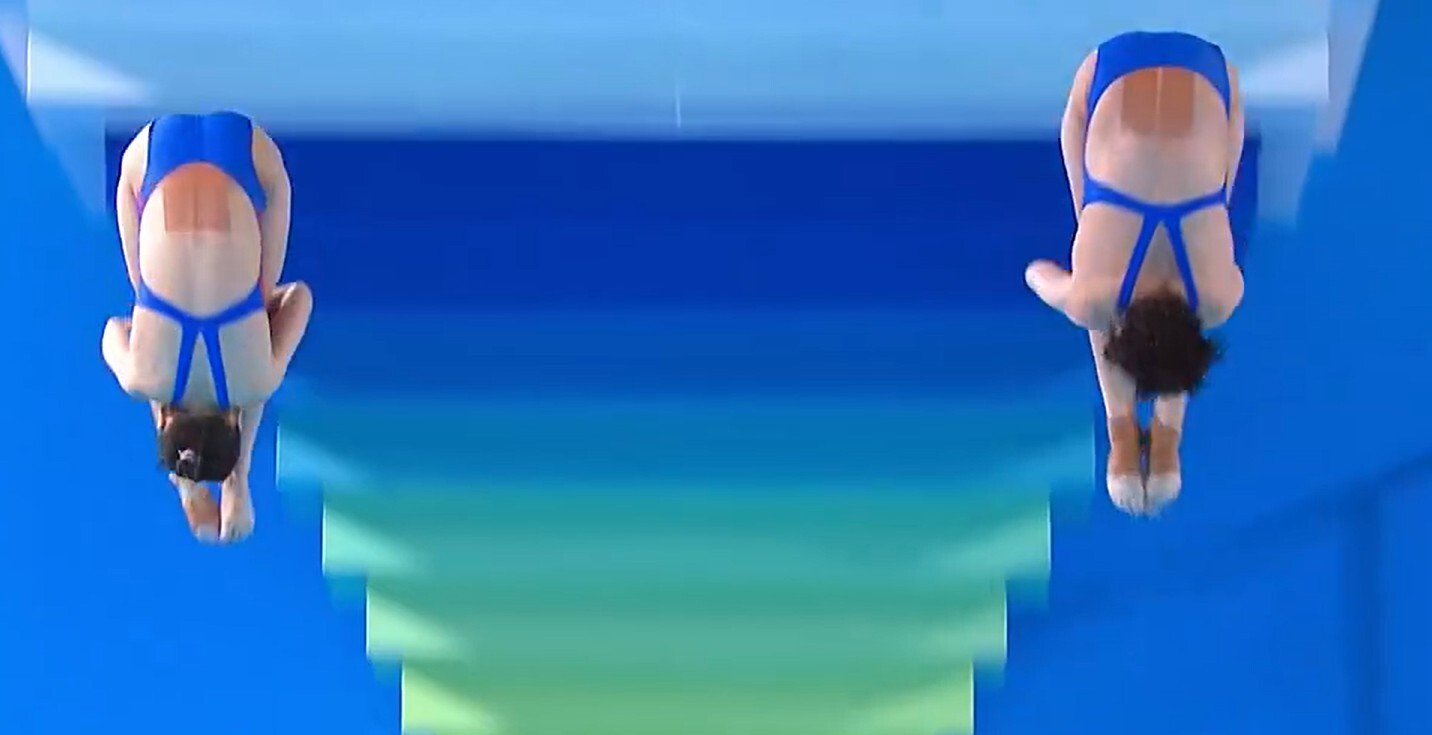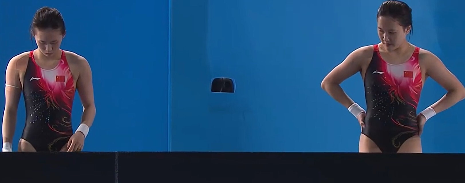 最后进行的是女子双人10米台的比赛,因为全红婵和陈芋汐的参加,该项目备受关注。全红婵搭档王伟莹最后一个登场,3组动作分别为107B(向前翻腾三周半屈体)、407C(向内翻腾三周半抱膝)和5253B(向后翻腾两周半转体一周半),3组动作两人均配合默契顺利完成,第1轮比赛全红婵/王伟莹76.50分排名第1位,第2轮两人单轮78.72分并列第1,两轮过后以0.9分优势领先陈芋汐。第3轮两人得到了80.64分的高分,总成绩定格在235.86分。