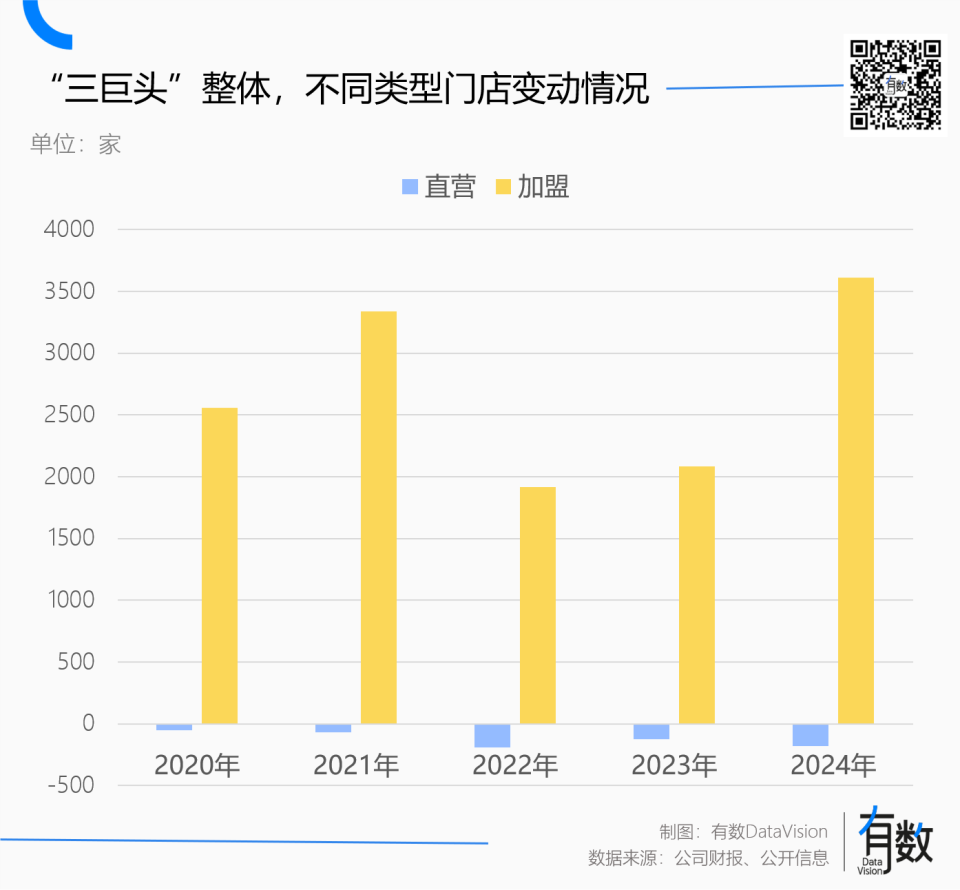 因此,酒店的连锁化率一定会提高,开始就很难停下来。2015年至2019年,国内连锁化率提高了13.6%,国内“三巨头”的新增门店中,加盟门店增长已连续四年超过100%。