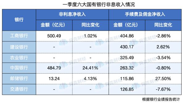 根据新京报贝壳财经记者统计,六大国有银行中,农行、工行、中行、交行4家银行手续费及佣金净收入同比出现负增长,建设银行手续费及佣金净收入同比增长2.62%,邮储银行则增长27.50%。