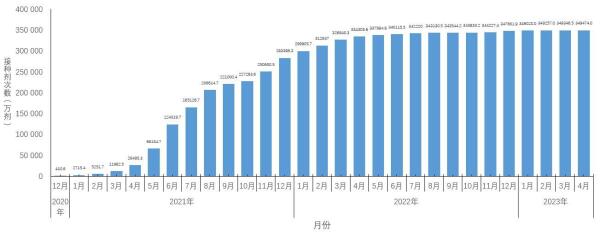 图5-1 分月新冠病毒疫苗累计接种剂次