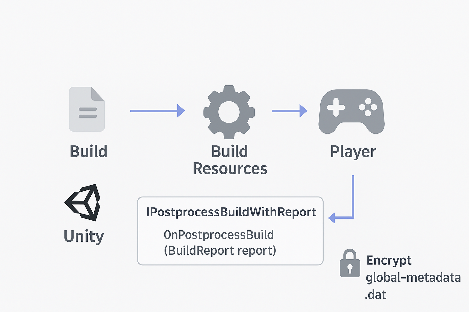 那么其实我们就可以扩展这个接口,并且重写OnPostprocessBuild,就可以实现在构建项目的时候一并完成对global-metadata.dat加固了。