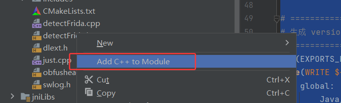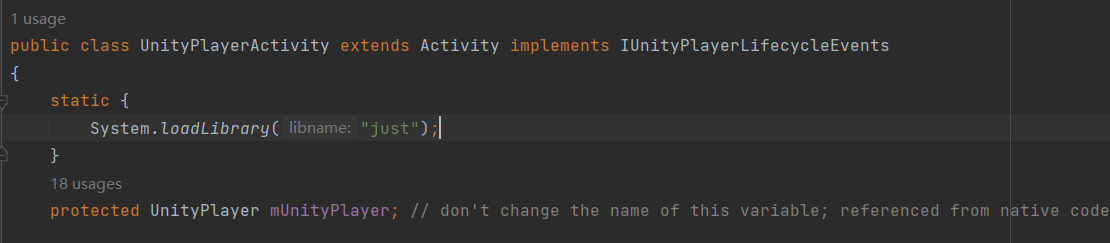 接下来我们需要在项目中的loader写入解密代码,但你会发现Android studio 好像无法完美识别到关于il2cpp.so的代码,我们需要手动在