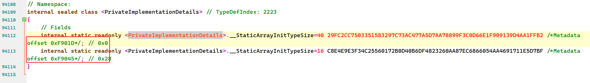 可以看到这里原本应该是有意义的symbol,但此刻变成了乱码,即Metadata成功被加密