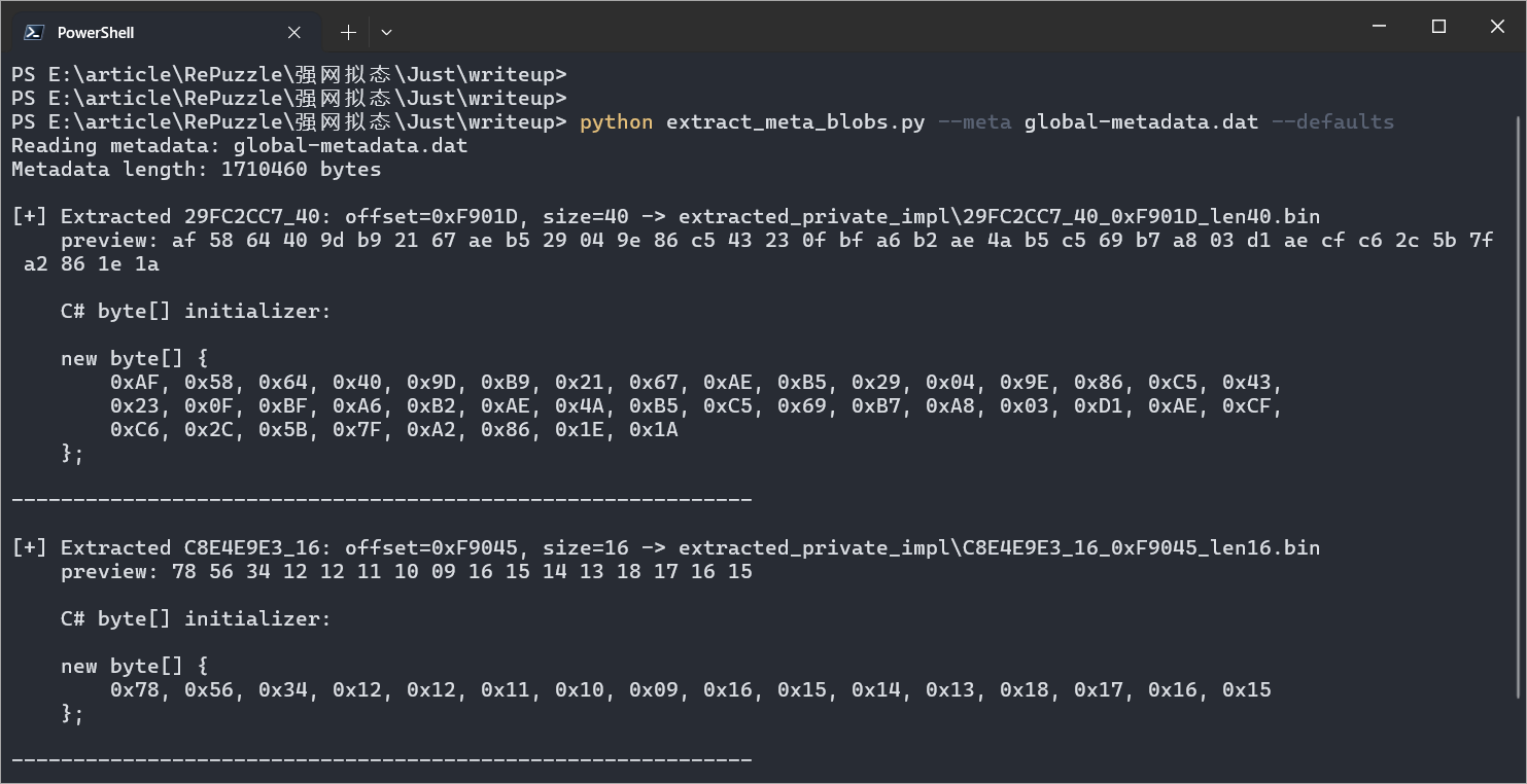 p = argparse.ArgumentParser(description="Extract raw blobs from global-metadata.dat by offset+size.")