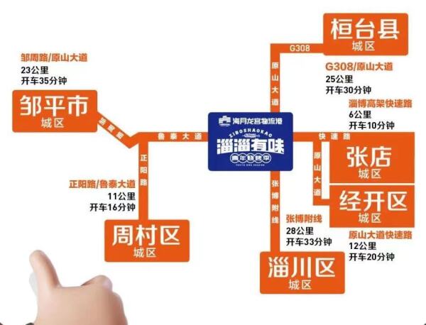 从位置区域看,海月龙宫物流港处于京台高速与济青高速这两条重要高速的交汇处,周边五区三县均可半小时到达,并且在淄博改善交通环境之时,直达该物流港的公交线路数量更多。